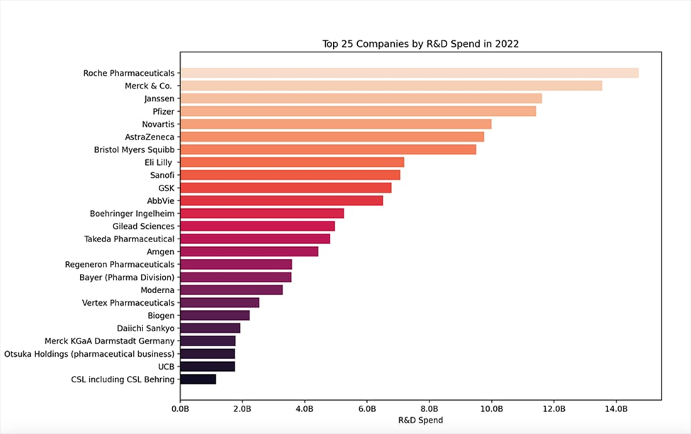 Figure 3: Top 25 Global Pharmaceutical Companies by R&D Expenditure (recent benchmark), highlighting the massive absolute gap that perpetuates India’s generics entrapment and innovation deficit (source: Drug Discovery Trends, 2023–2025 updates).