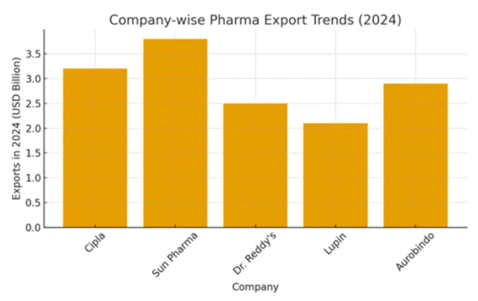 Figure 2: Company-wise Pharmaceutical Export Trends (2024), demonstrating the role of private multinationals in India’s global generics leadership and potential for aligned geopolitical objectives (source: Eminence Group Ventures, 2025).